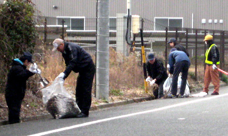 会社周辺の土壌汚染や水質汚濁・不法投棄の防止を目的として以下の清掃活動を行っています。