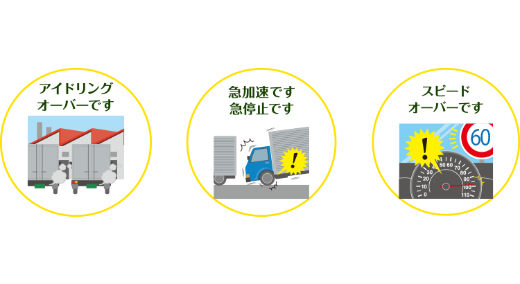 全車両へ矢崎製デジタルタコグラフを搭載し、急発進・急加速・急停止やアイドリング時間等の見える化と乗務員の意識・技術向上を目指すことで、環境保護に努めます。